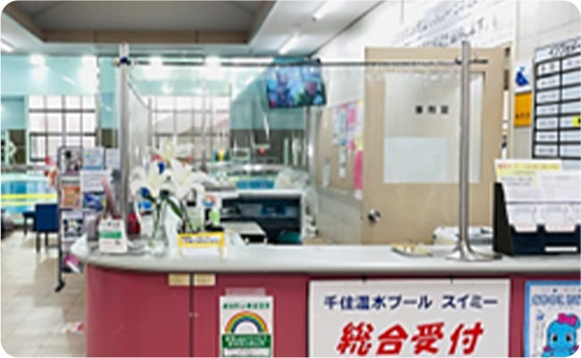 プールに入場する場合は、こちらに利用券、回数券等を渡してください。