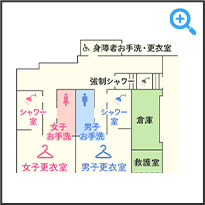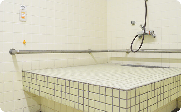 入場すると自動でシャワーが出ます。汗やお化粧を十分に洗い流すよう、お願い致します。入水前や入水途中でトイレに行った後は必ずお使いください。