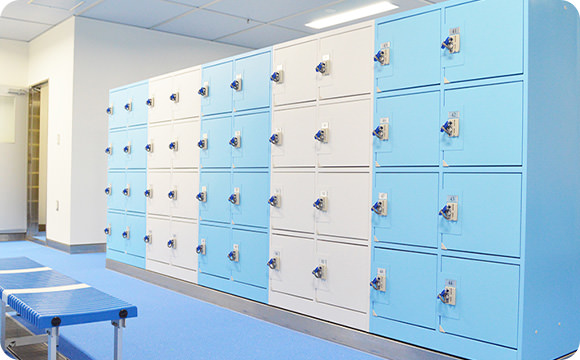 バリアフリーでロッカー、シャワー、トイレ、オスメットを備えた更衣室です。1室なので、利用者が重なってしまった場合はお待ちいただきます。