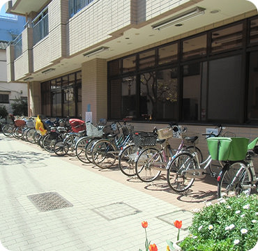 自動ドアからお入りください。お食事は外のベンチでお願いいたします。館内ではお食事はご遠慮ください。